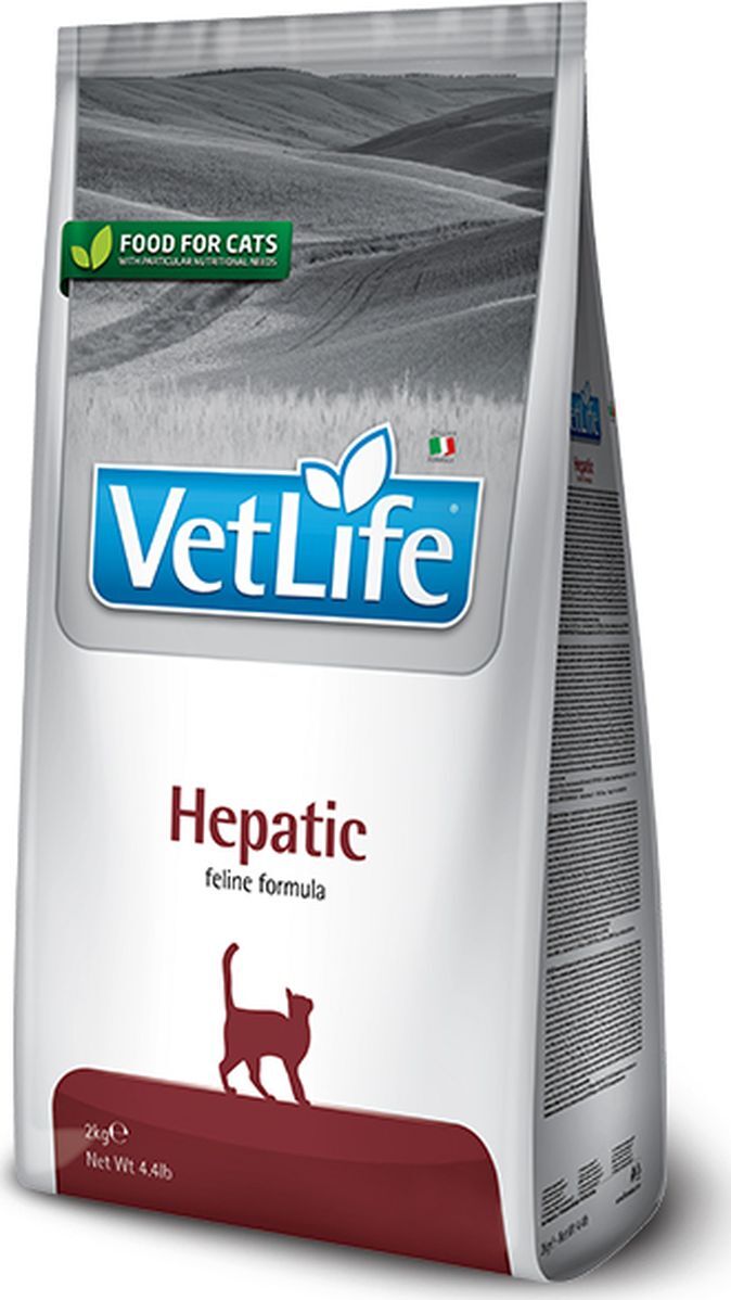 Farmina Vet Life Hepatic - полнорационный диетический корм для кошек для поддержания функции печени в случае хронической печеночной недостаточности. Умеренное содержание легкоусвояемого белка. (Фармина)