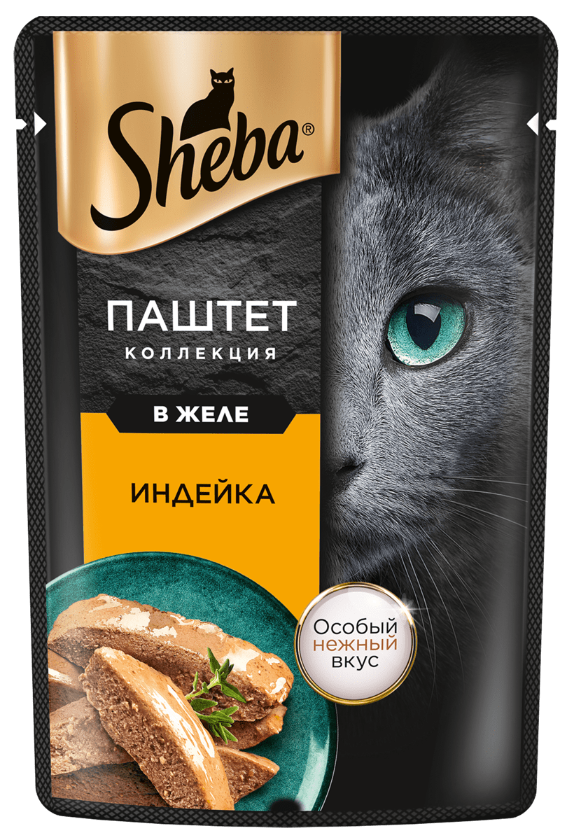 Тающий во рту паштет из индейки покрыт тонким слоем ароматного желе. Теперь даже самые притязательные кошки смогут насладиться его бархатистым вкусом и восхитительной подачей. (Шеба)