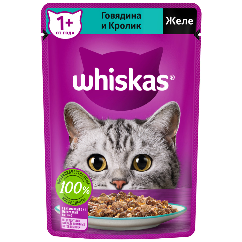 Whiskas влаж. говядина кролик в желе