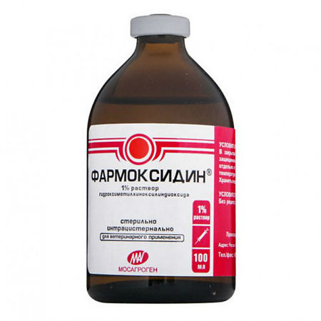 Раствор фармоксидина 1 %, в форме монопрепарата, применяют для лечения ранних расстройств секреции в отдельных долях вымени и скрытых маститов коров, а также для профилактических санирующих обработок вымени в начале сухостойного периода.