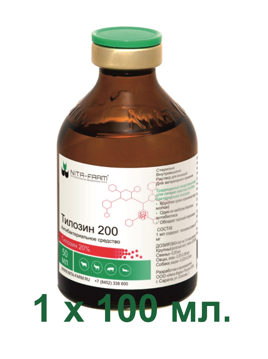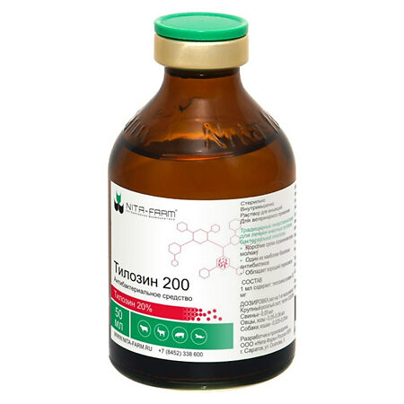 Тилозин 200 — антибактериальные лекарственные средства в форме растворов для инъекций, содержащие в качестве действующего вещества тилозина основание 200000 мкг/мл, а в качестве вспомогательных компонентов пропандиол, бензиловый спирт и воду для инъекций.