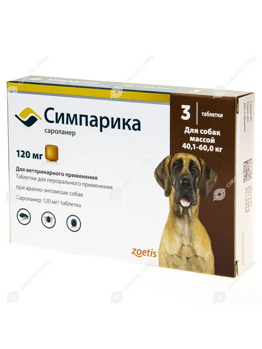 Симпарику назначают собакам для лечения и профилактики энтомозов, вызываемых блохами (Ctenocephalides felis, Ctenocephalides canis), акарозов, вызываемых иксодовыми (Dermacentor reticulatus, Dermacentor variabilis, Ixodes hexagonus, Ixodes holocyclus, Ixodes ricinus, Ixodes scapularis, Rhipicephalus sanguineus, Amblyomma americanum, Amblyomma maculatum), саркоптоидными (Sarcoptes scabiei), псороптоидными (Otodectes cynotis) и демодекозными (Demodex canis) клещами.