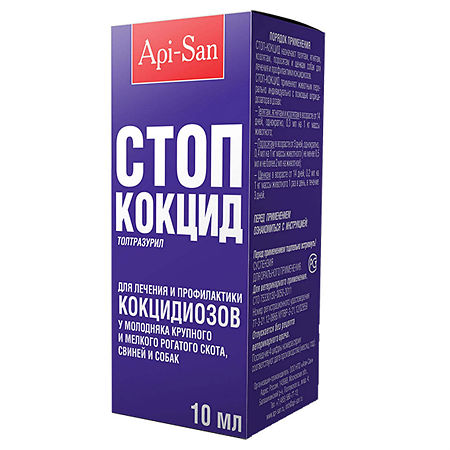 Стоп-кокцид назначают телятам, ягнятам, козлятам, поросятам, кроликам, щенкам собак и пушным зверям для лечения и про филактики кокцидиозов.