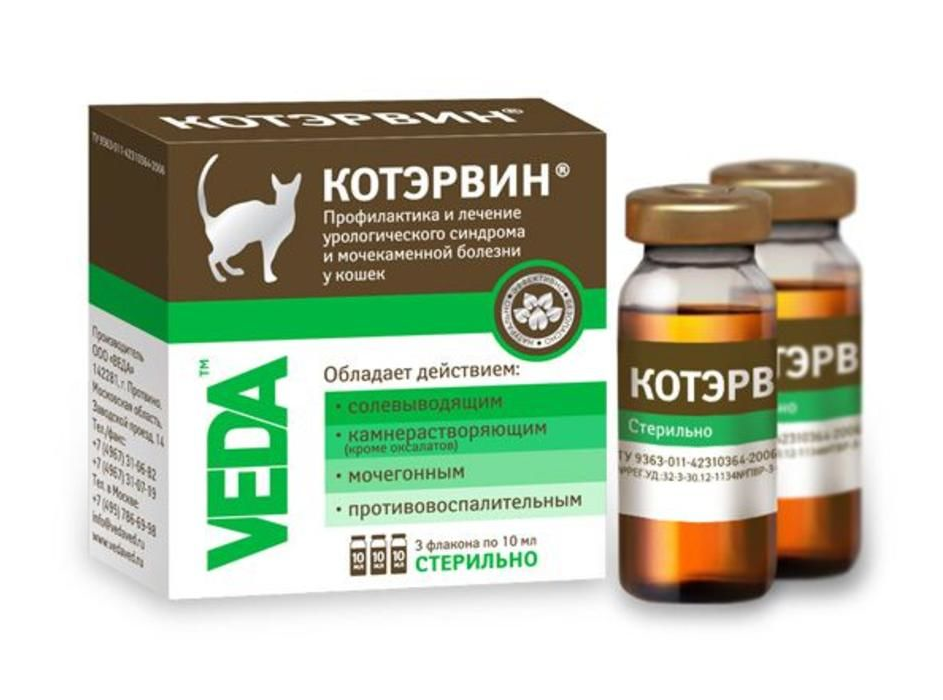 Для лечения мочекаменных болезней и урологического синдрома котов применяют препарат КотЭрвин.