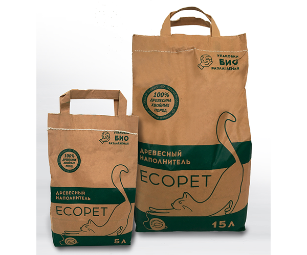 Древесный впитывающий наполнитель Ecopet для кошачьего туалета.